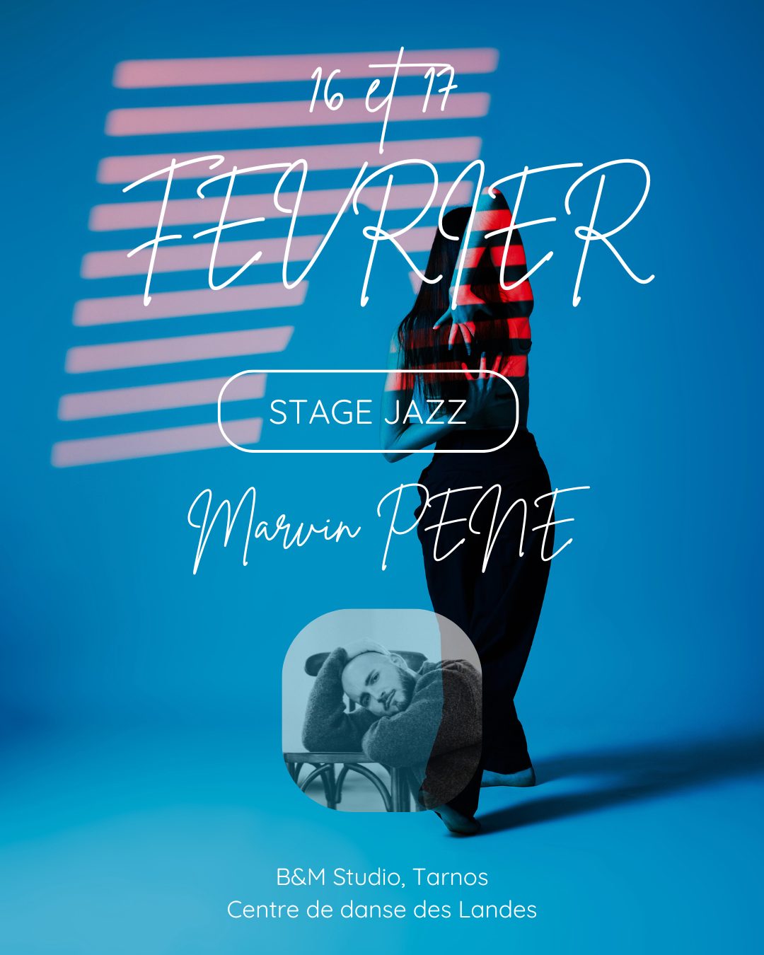 Pendant les vacances d’hiver, B&M STUDIO a le plaisir d’organiser un stage exceptionnel de danse Jazz animé par Marvin PENE 🔥